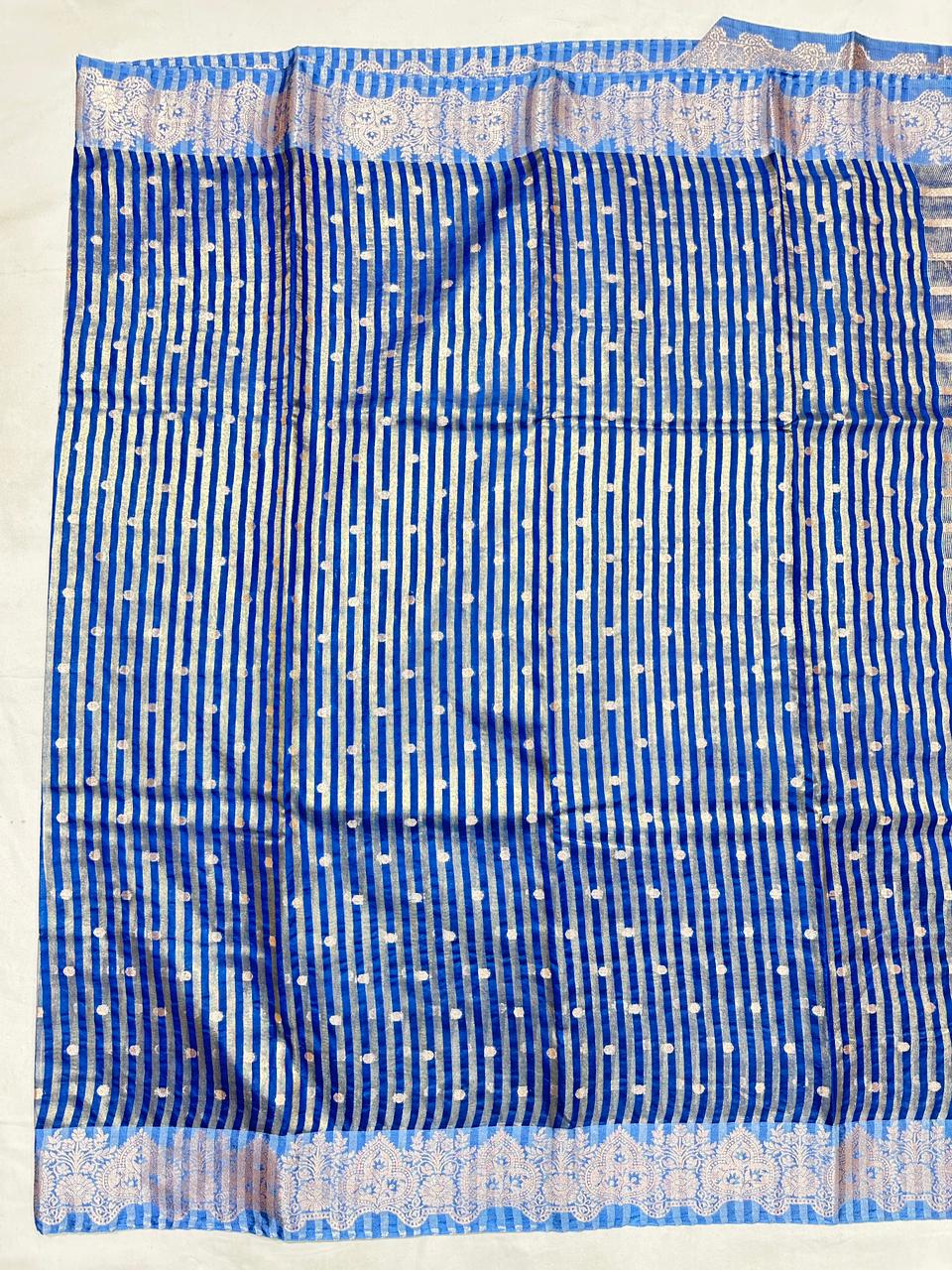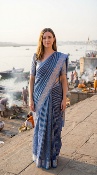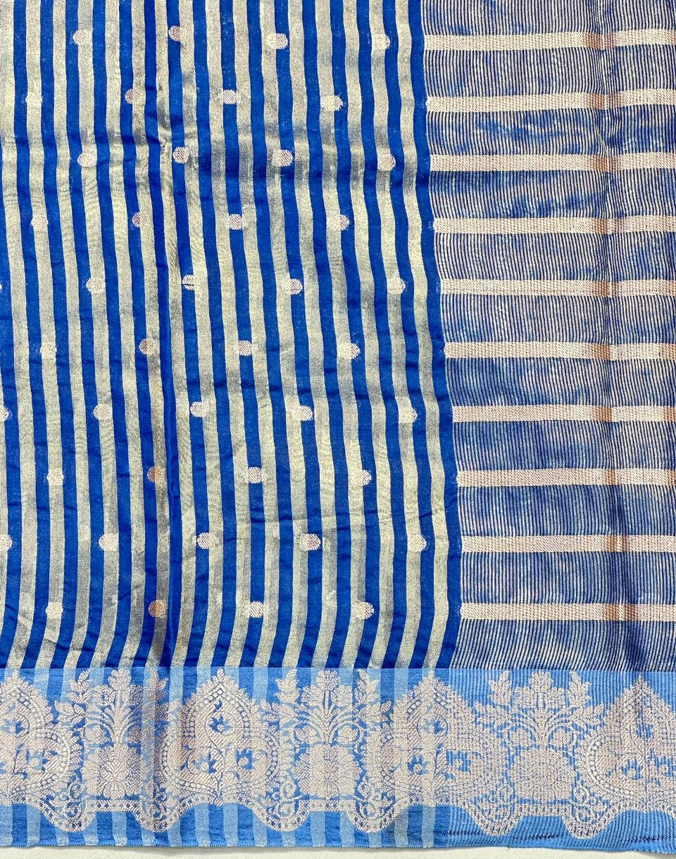 Fabric: Authentic Raw Mango Silk in a delicate Tissue weave, known for its subtle sheen and luxurious texture.