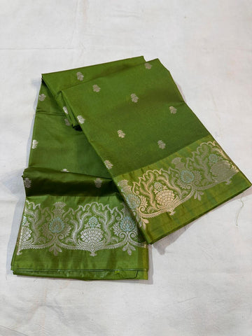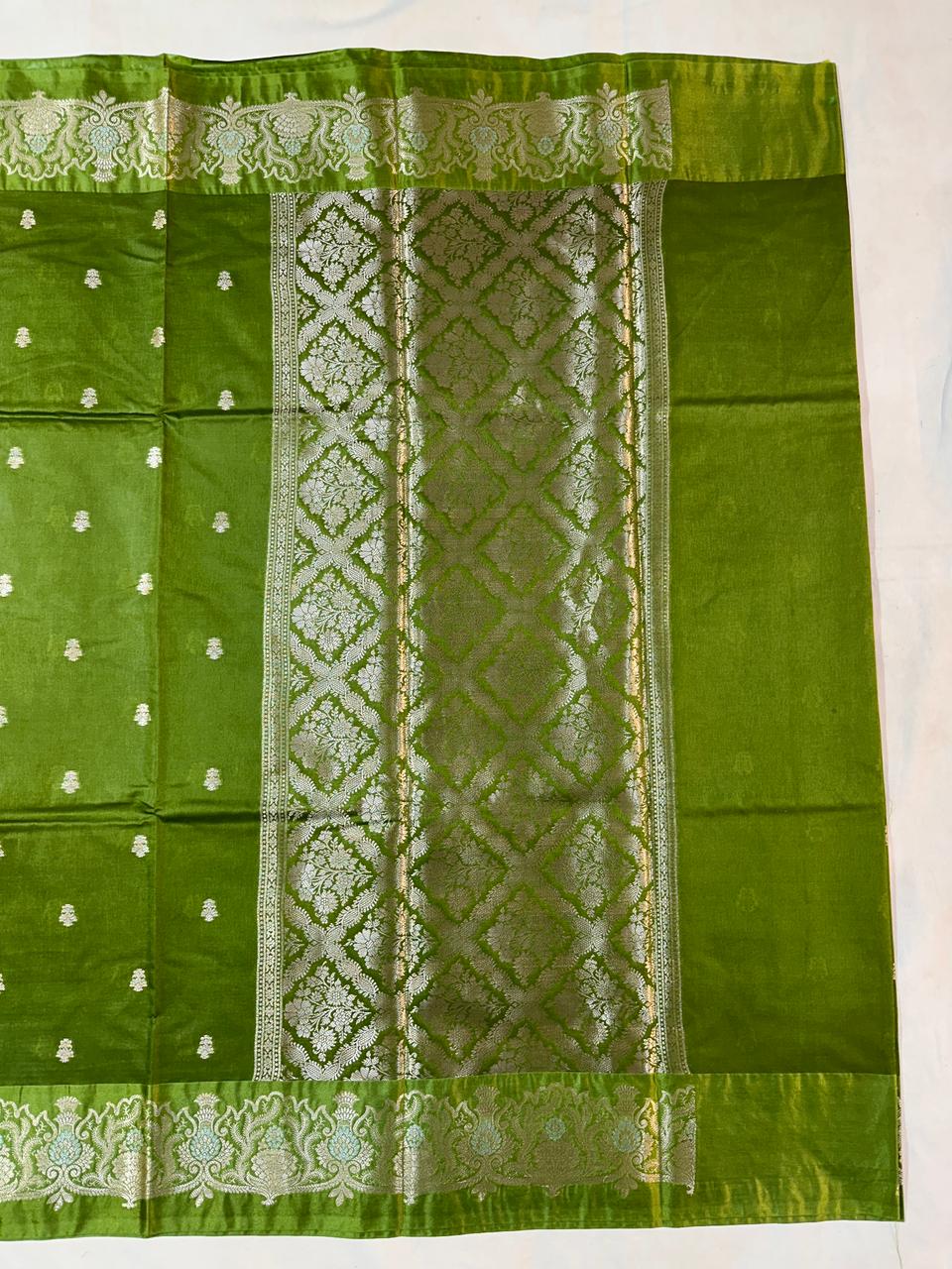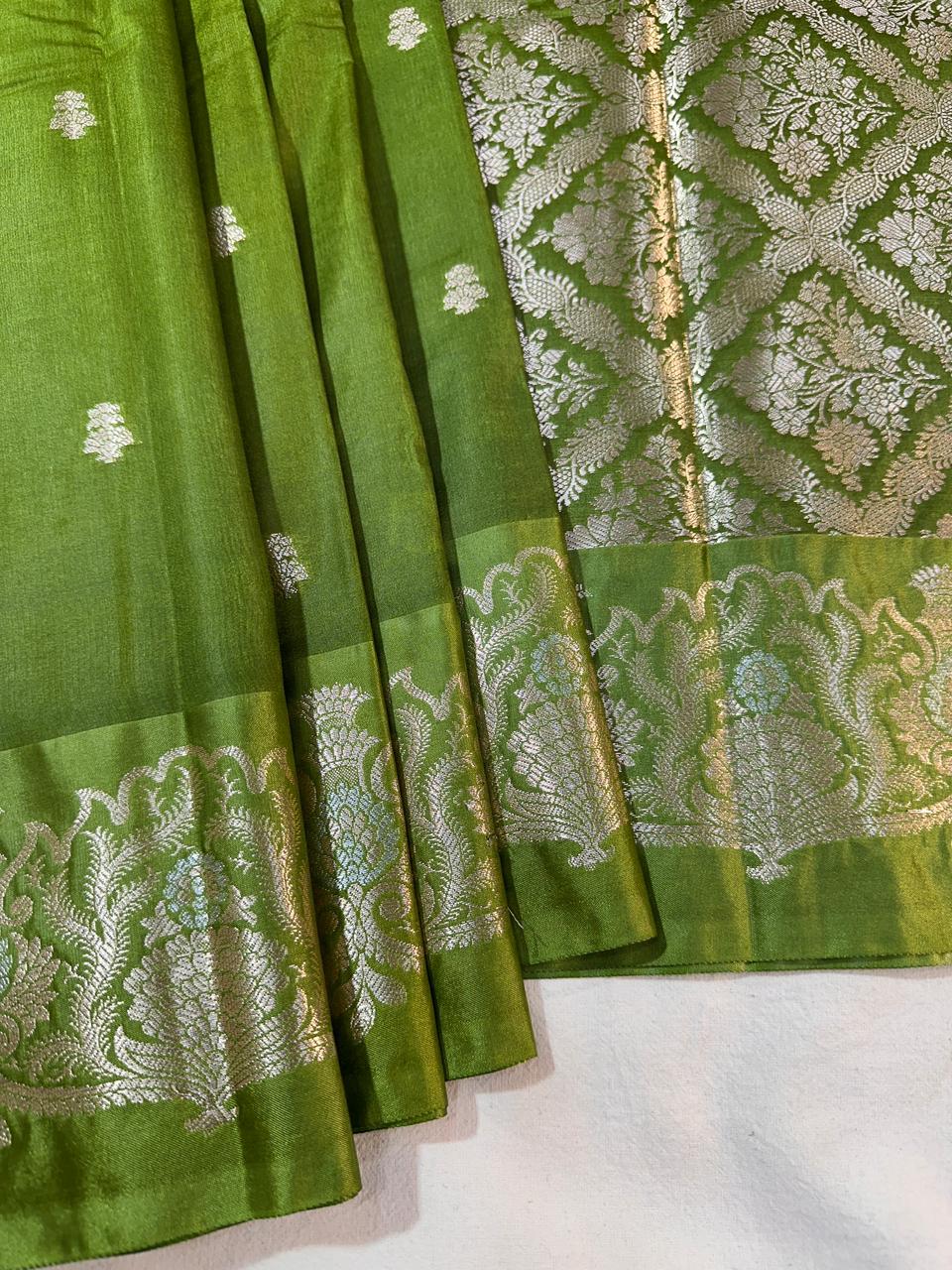 Welcome elegance and comfort with our stunning Green Mango Silk Satin Border Saree. This exquisite piece combines the lush, refreshing hue of green mango with the luxurious drape of satin, making it a perfect choice for weddings, festivals, parties, and special occasions.
