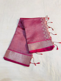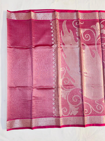 This elegant tissue silk saree for wedding is designed for brides and festive occasions. Crafted with premium tissue silk fabric, this saree features a traditional stripe pallu weave that adds a rich and timeless appeal.