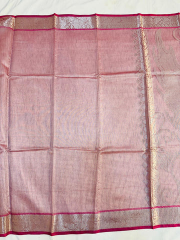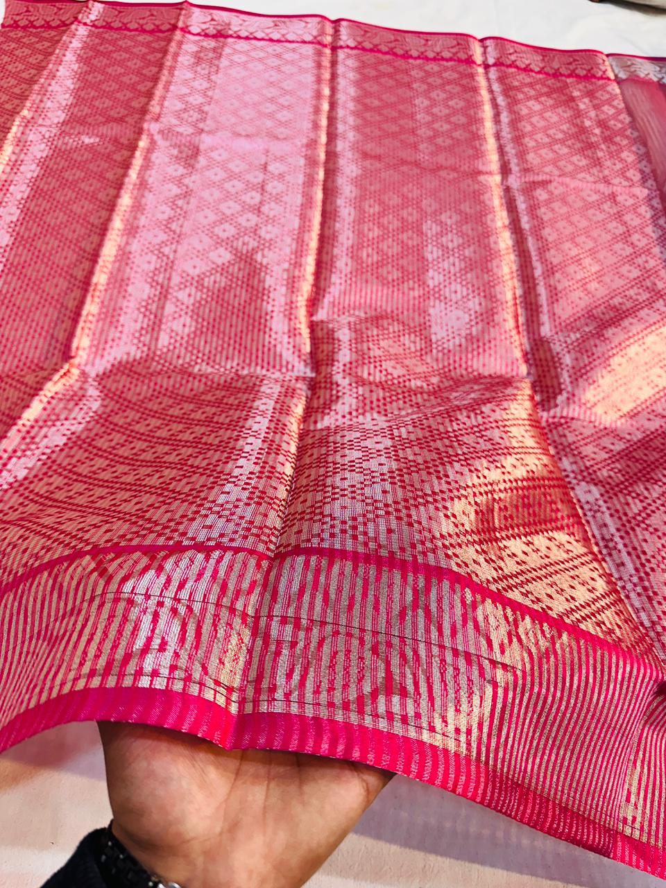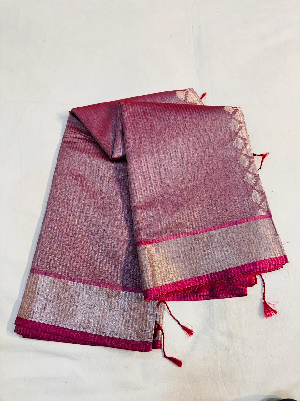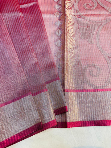 Tissue Stripe Silk Saree | Traditional Pallu Weave | Lightweight 300 gm | 5.5 mtr with 1 mtr Blouse Piece.